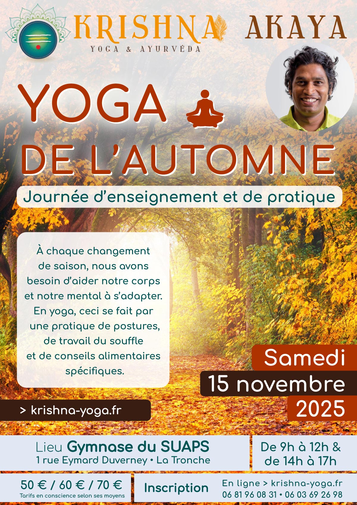 Pour continuer le cycle de stages de yoga consacré au changement de saison, je vous propose ce stage d’une journée, le samedi 15 novembre.